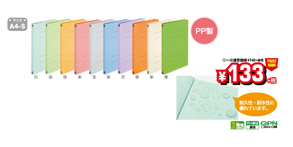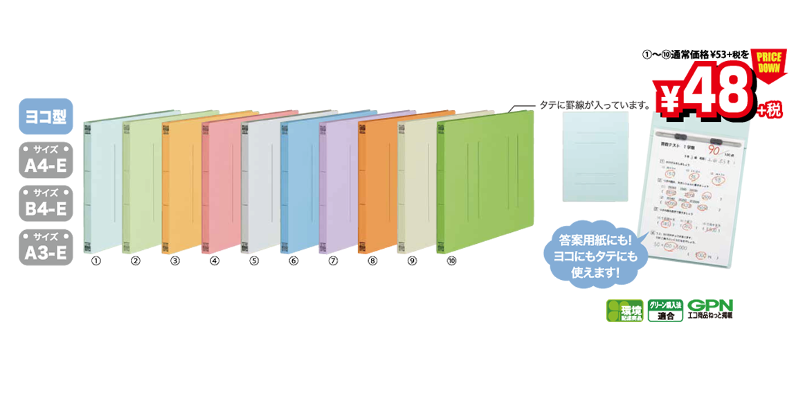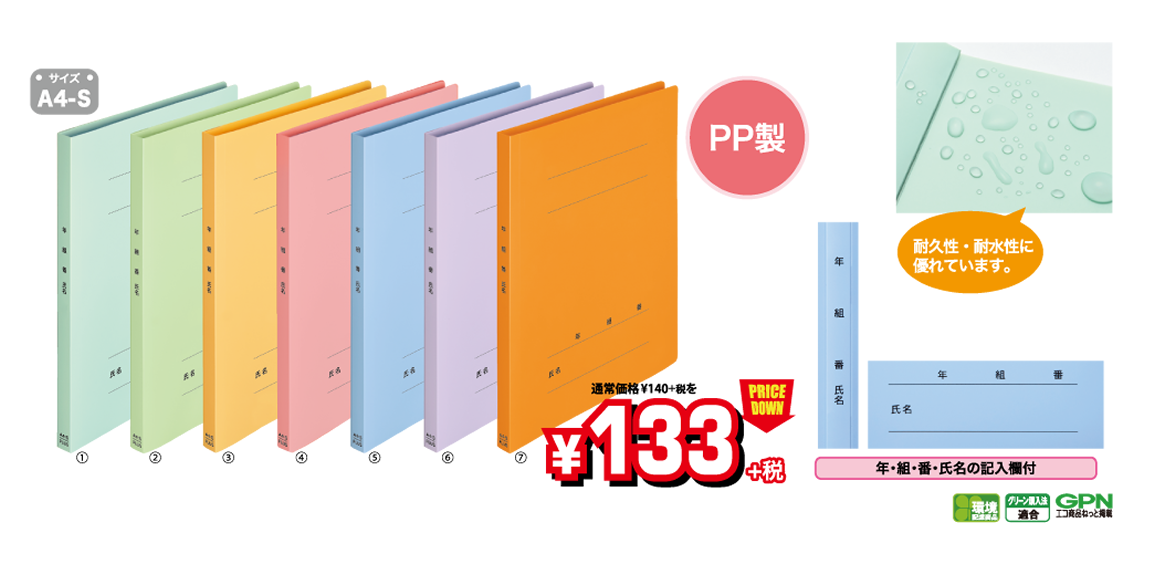 | ブルー | グリーン | イエロー | ピンク | グレー | ロイヤルブルー | バイオレット | オレンジ | アイボリー | リーフグリーン | ||||