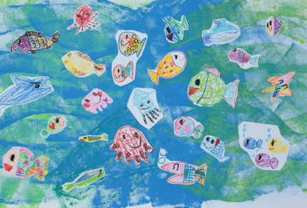 夏はダイナミックに絵の具を使った大きな作品はいかがでしょうか?