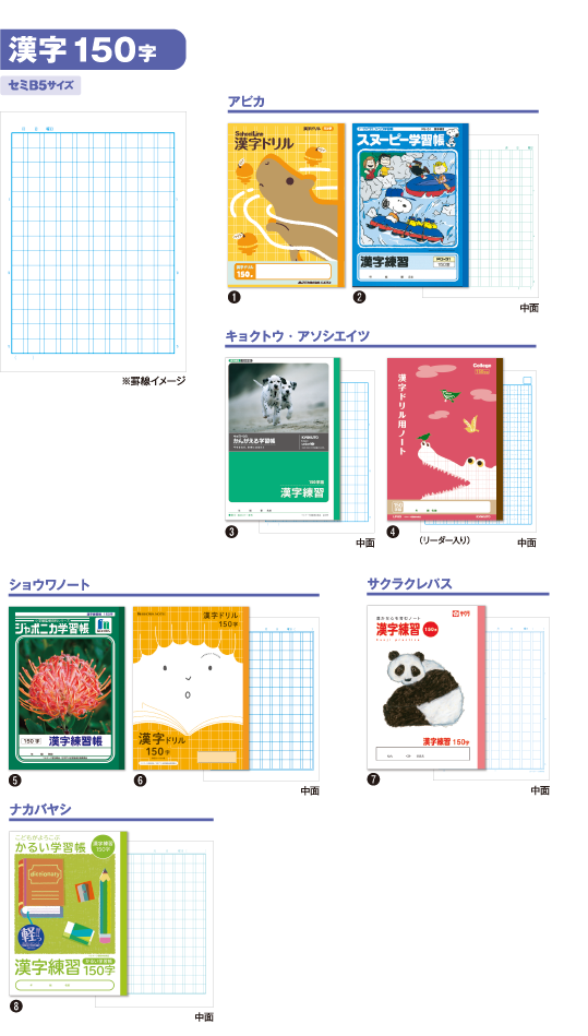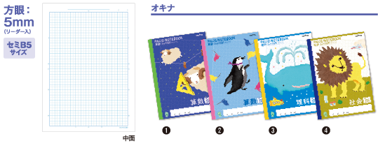 かんがえる学習帳 L502 180 116 ジャポニカ学習帳 JL-67 180 148 ジャポニカフレンド JFL-67 180 148 スヌーピー学習帳 PT-125 150 112 かんがえる学習帳 A502 150 96 かんがえる学習帳 A503 150 96