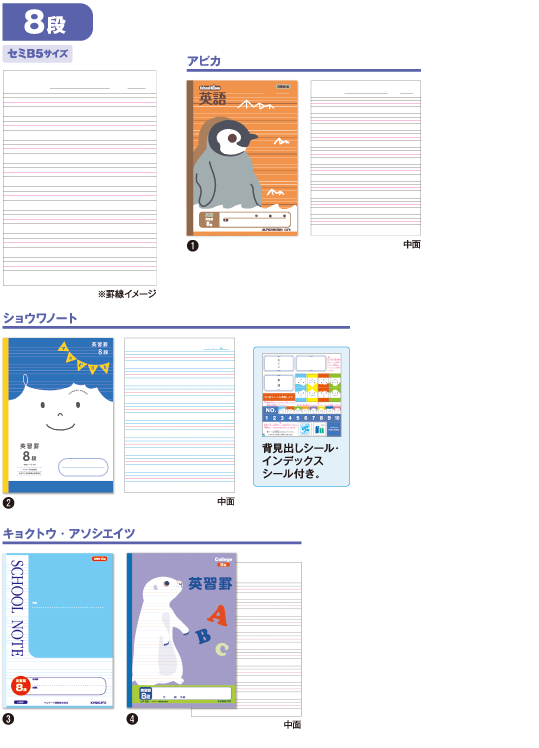 スクールキッズ SL415R 180 116 かんがえる学習帳 L11R 180 116 カレッジアニマル LP13 180 125 ジャポニカ学習帳 JL-13 180 148 ジャポニカフレンド JFL-13 180 148 サクラ学習帳 NP29 180 130 かるい学習帳 NB51-C15GL 180 125