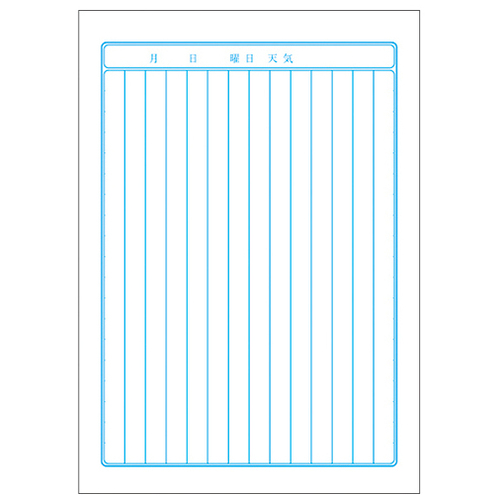 ●外形寸法(縦)[mm]:210●外形寸法(横)[mm]:148●枚数[枚]:30●罫内容:タテ罫9mm●行数[行]:14●製本形式:糸綴じ●対象学年:4~6年●規格:A5●種別:日記帳●製造国:日本 ●最小出荷単位: 1