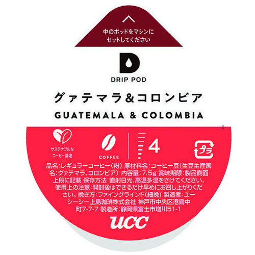 ●種別:グァテマラ&コロンビア●入数:12個●内容量(個装):7.5g●何杯分:12杯分●タイプ:粉末(カートリッジ)●容器形状:マシン用カートリッジ●ミルク:無●シュガー:無糖●甘さ:無●ブランド:UCC ドリップポッド●軽減税率:対象●製造国:日本●メーカーの都合によりパッケージや仕様などが変更になる場合がございますので、あらかじめご了承ください。 ●最小出荷単位: 1