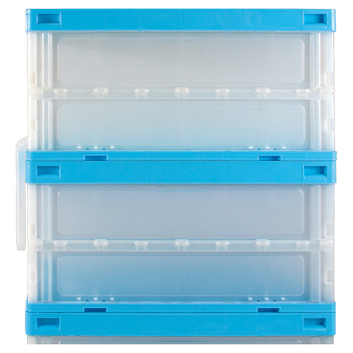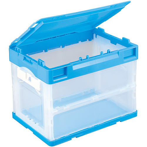 ●外形寸法(幅)[mm]:366●外形寸法(奥)[mm]:262●外形寸法(高)[mm]:284●扉寸法:幅170×高176mm●扉タイプ:2面扉(短側面)●質量[kg]:1.49●容量[L]:20●色:透明/ブルー●耐荷重[kg]:10●最大積載段数:6段●折りたたみ時寸法:高88mm●材質:ポリプロピレン ●最小出荷単位: 1