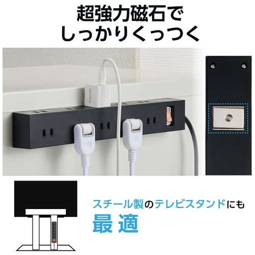●外形寸法(幅)[mm]:295●外形寸法(奥)[mm]:43●外形寸法(高)[mm]:32●外形寸法(注釈):※コード部分及びプラグ部分を除く●質量:約620g●スイッチ:有(一括スイッチ)●コンセント口数[個口]:10●スイングプラグ:有●抜け止め機構:無●裏面マグネット:有●定格:125V/15A/1500W●コード長:5m●色:ブラック●使用可能地域:日本国内専用●保証期間:1年間●材質:本体=ABS樹脂、プラグ=PVC、差込口=ユリア樹脂●本体差込口形状:2ピン●本体差込口個数:10個口(上面5個口/側面5個口)●プラグ仕様:2ピン●3ピン→2ピン変換アダプター付属:×●雷ガード:○ ●ホコリシャッター:○ ●絶縁キャップ付きプラグ:○ ●差込口キャップ付属:× ●通電表示ランプ:○(一括スイッチ部) ●二重被ふく:○ ●固定方法:マグネットによる仮固定が可能。 ●ノイズフィルター:× ●モジュラージャック付き:× ●電気用品安全法:PSE適合 ●その他:差込み口を上面と側面に配置したコンパクト設計。 ●最小出荷単位: 1