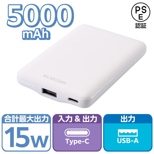 モバイルバッテリー 5000mAh ホワイト