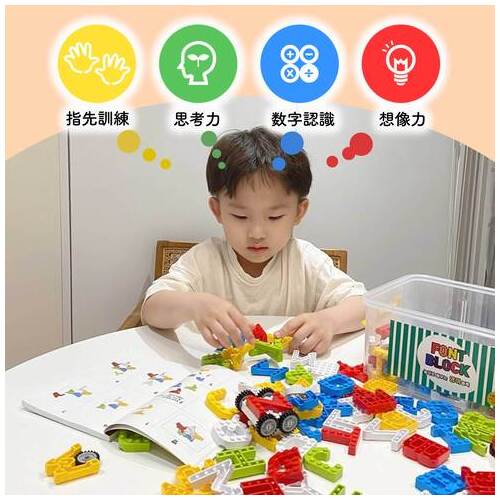 遊びながら英語を学べるブロックのおもちゃ。鮮やかな5色のA~Zまでのアルファベットブロックで楽しく遊んで指先訓練、集中力、想像力も育みます。