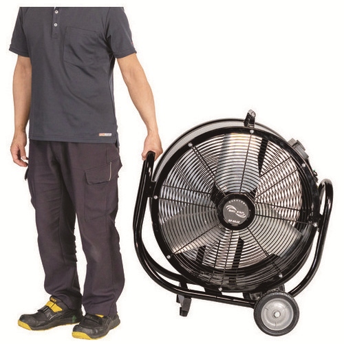 羽根径60cmの大型の工業扇。全閉式モーター、アルミ羽根採用。体育館や倉庫など広いスペースにおすすめ。移動に便利なキャスター付。