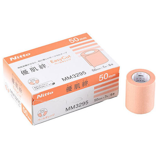 ハサミのいらない手切れ性がよい、肌に優しいサージカルテープです。ミシン目加工が3mmごとにあるため、はさみを使わなくてもキレイに切れます。