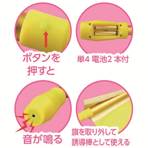 ●旗寸法:345×390mm●柄寸法:直径45×590mm●質量:225g●付属品:単4形乾電池×2本●材質:旗=ポリエステル繊維、ポール=アルミ合金、ABS、ゴム●製造国:中国 ●最小出荷単位: 1