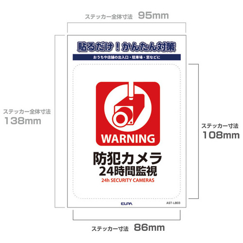 ●寸法:横86×縦108mm●質量:約1g●種別:24時間監視●材質:塩化ビニール●原産国:日本●ステッカー全体寸法:横95×縦138mm ●最小出荷単位: 1