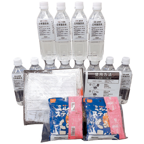 ●外形寸法(幅)[mm]:353●外形寸法(奥)[mm]:195●外形寸法(高)[mm]:640●質量[kg]:(中身含む)約12●セット内容:500mLペットボトル×12本、トイレキット×10枚、消臭スプレー×1個、ブランケット×4枚、ラジオライト×1個、ホイッスル×1個、ティッシュ×4個、マスク×4個、ブドウ糖×4個、ミルクスティック×4袋●賞味期限:約4年●種別:フラットライプ●材質:スチール(筐体)●注意事項:壁と床の養生マットは本体寸法分カットが必要です。●マグネットにて壁面と設置●賞味期限4年以上の商品を納品いたします。●セット内容は、予告なく同等品に差し替えとなる場合がございます。あらかじめご了承ください。 ●最小出荷単位: 1