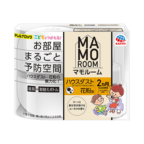 ●家庭用100Vの電源で使用。成分が部屋中に広がりハウスダスト(ダニのフン、PM2.5、カビ)、花粉に付着し落下を促進。床上の舞い散りを防止。●セット内容:器具1個、取替えボトル1本2ヵ月用●内容量:45ml●成分:溶剤、香料●使用期間:約2ヵ月(1日24時間使用 約1440時間)※45~90日、季節や使用環境によって異なります。●適用範囲:4.5~12畳●アレルギー体質の人は使用に注意する。●使用中、器具上部や蒸散口は熱くなるので、手で触れたり、中に指を入れたりしない。やけどの原因となるおそれがある。●使用中及び使用後は子供の手に触れさせない。●直射日光を避け、涼しい所に保管する。●出荷/包装単位:1/10 ●最小出荷単位: 1