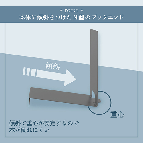 本が倒れにくい斜め設計の新発想ブックスタンド「ブックチルト」は、収納とディスプレイの2通りで使えるアイテムです。従来のブックエンドの欠点だった本の転倒を、斜めの台座構造で解消。お気に入りの本を飾るインテリアとしても活用でき、カラーはホワイト・ブラック・グレーの3色展開、部屋の雰囲気に合わせて選べます。 ●最小出荷単位: 10
