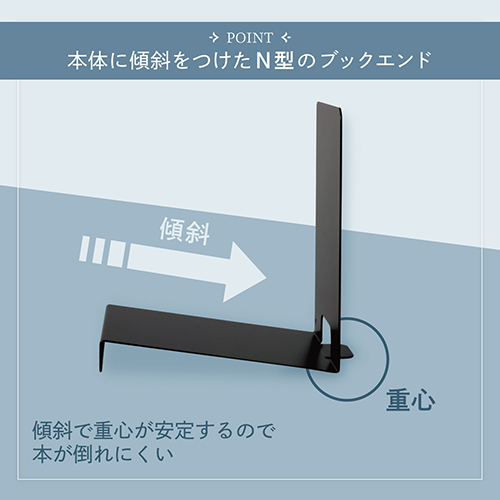 本が倒れにくい斜め設計の新発想ブックスタンド「ブックチルト」は、収納とディスプレイの2通りで使えるアイテムです。従来のブックエンドの欠点だった本の転倒を、斜めの台座構造で解消。お気に入りの本を飾るインテリアとしても活用でき、カラーはホワイト・ブラック・グレーの3色展開、部屋の雰囲気に合わせて選べます。 ●最小出荷単位: 10