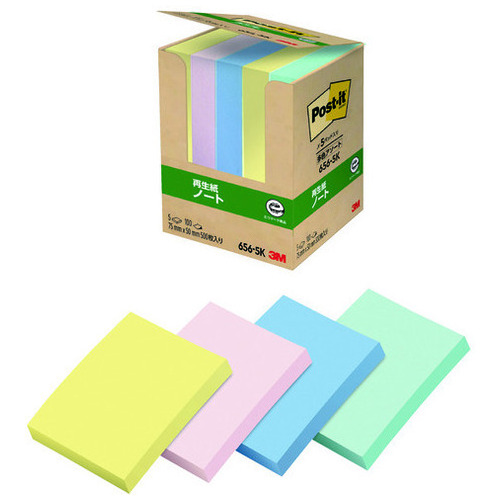 Post-it再生紙 75×50mm 656-5K 混色