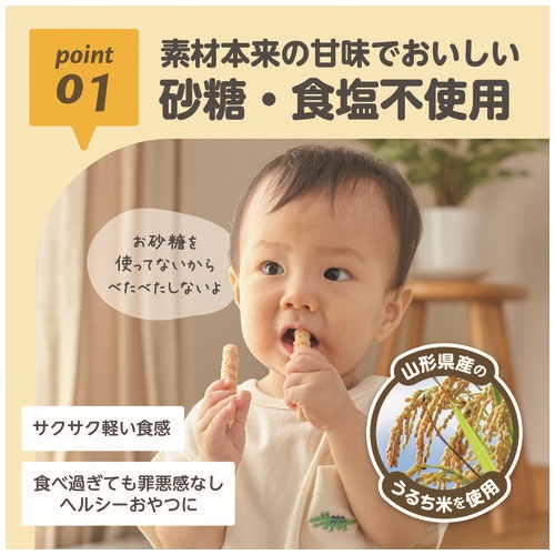 砂糖・食塩不使用。サクサクと軽い食感のおせんべいは手づかみ食べの練習にもおすすめです。