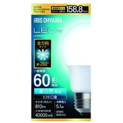 ●入数:4個(1個×4個)●該当シリカ電球:60形相当●消費電力:5.1W●口金:E26●全光束[lm]:810●定格寿命:40000時間●色:昼白色●注意事項:4個まとめての箱入りではありませんのでご注意ください。●まとめ買い ●最小出荷単位: 1