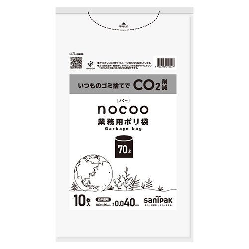 CO2排出削減を考えた環境配慮型のゴミ袋です。白半透明70L、10枚タイプ。
