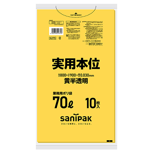 業務用ポリ袋実用本位 70L 黄半透明 10枚