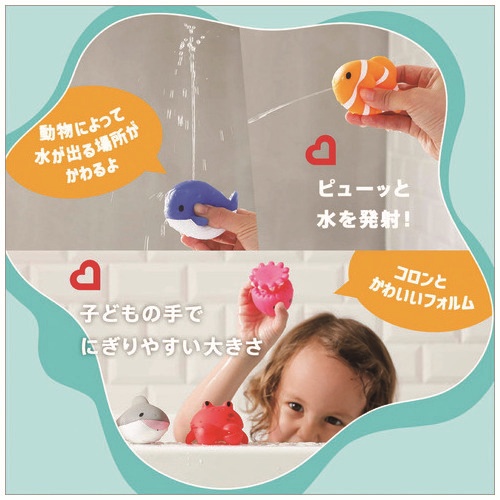 ピューッと水を発射!海と陸のかわいいお友達の水でっぽう。動物によって水が出る場所がかわる!