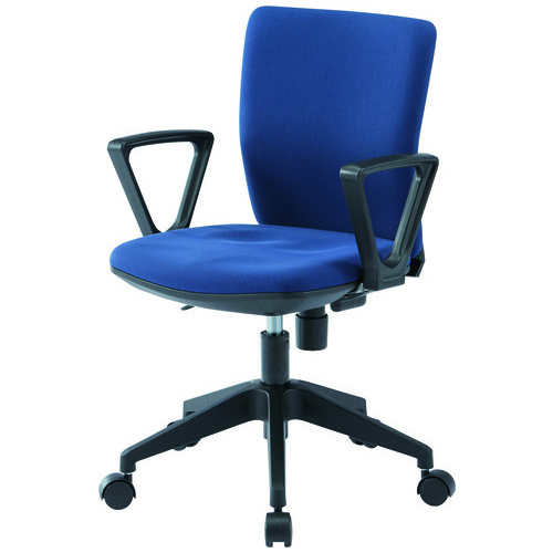座り心地の良いコンパクトなオフィスチェア/ネイビー(肘付き)。岐阜県生活技術研究所が男女62名の人体形状から導き出した座面形状を採用、事務作業(前傾)姿勢において体圧が従来品(一般的な事務用イス)の約80%に軽減されています。肘なしは754-359よりお求めください。