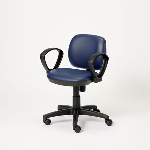 クッションにボリューム感のあるベーシック事務用チェア「JF」/PVCレザー張/肘付き/ブルー。シックな色合いのカラー。布・PVCレザーの2タイプあります。肘付きは、商品コード868-776をお選びください。