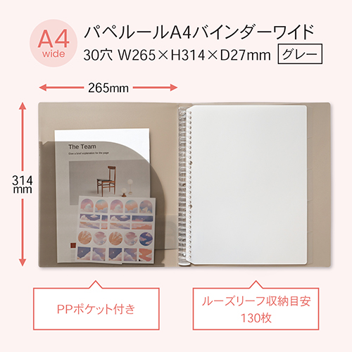 パペルール A4バインダーワイド グレー