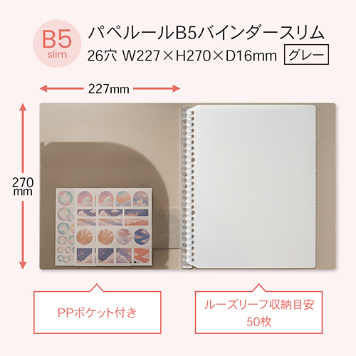 パペルール B5バインダースリム グレー