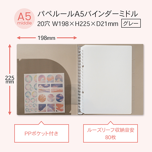 パペルール A5バインダーミドル グレー