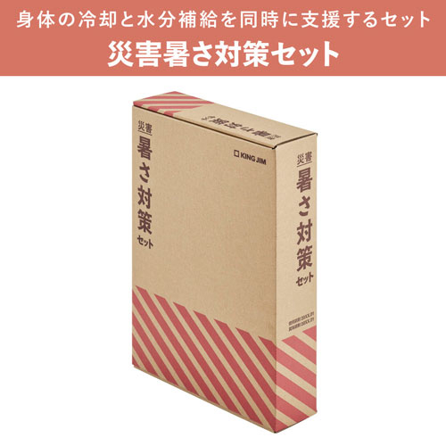 ●外形寸法:約W68×D222×H313mm●質量:約1,905g●主な材質:紙(外箱)●セット内容:瞬間冷却パック×5個、使い捨てフェイスタオル×2枚、うちわ×1枚、OS-1(オーエスワン)パウダー※経口補水液パウダー×2袋、保存水(500ml)×2本、使い方ガイド×1●残存期限3年6ヵ月以上の商品をお届けします。●【ご使用上の注意】直接日光の当たる場所や、高温・多湿の場所での保管はしないでください。商品の見直しなどのため、仕様・価格・デザインその他は予告なく変更する場合があります。商品の色は撮影などの関係で実際の色とは異なって見えることがあります。本セットは使用期限・賞味期限4年です。使用期限は瞬間冷却パックに適用されます。賞味期限は食品類(OS-1パウダー・保存水)に適用されます。保存環境によっては、冷却パックが凝固したり吸湿することで、冷却性能が低下する場合があります。年に1回程度、冷却パックの状態を確認し、内部の顆粒状薬剤が固まっている場合は、市販の冷却パックへの交換を推奨します。使用前に、内部の顆粒状薬剤が固まっている場合は、まんべんなく砕いてよく揉んでからご使用ください。冷却効果を強めたい場合は、氷のうなどを併用することを推奨します。製品状態に関わらず、使用期限を過ぎた商品は十分な冷却効果が得られないことがあります。キングジム、KINGJIM、KOKOBOは株式会社キングジムの商標または登録商標です。その他記載の商品名、サービス名およびロゴマークは、各社の商標または登録商標です。 ●最小出荷単位: 1