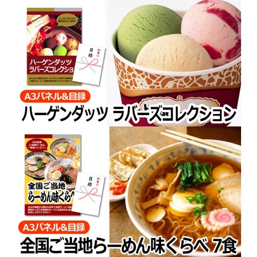 ●本体サイズ:310×430×8mm(1点あたり)●セット内容:A3パネル・パネルスタンド・目録封筒・引換ハガキのセットでお届けいたします。●景品パネル付き目録なのでイベントが盛り上がり、貰った方も荷物にならず持ち帰りも楽々で便利です。●景品引換方法は、ハガキでもネットでも申し込みできます。お申込みいただいたお届け先へお申込み商品をお届けします。●セット商品●システム料・送料込●納期:ご注文から約2~3日ほどお時間をいただきます。●※メーカー直送品ですので、ご返品はご遠慮ねがいます。●【セット内容1】選べる日本三大和牛●日本が誇る和牛「松阪牛」「神戸牛」「米沢牛」。美食を極めた日本三大和牛よりお好きなものを選んでお楽しみいただけます!●松阪牛焼肉300g、神戸牛すきやき300g、米沢牛しゃぶしゃぶ300gより1種お選びいただけます。●【セット内容2】浜ゆで ずわいがに 1尾●美味しさ新鮮!獲れたての新鮮なずわいがにをすぐに釜茹で。急速冷凍して繊細な甘みと旨みを封じ込めました!●ゆでずわいがに約600g×1尾●【セット内容3】スペイン産 生ハム食べくらべ●スペイン産の手作りされた上質な生ハムを食べくらべ。スペイン産生ハムの深い味わいをお楽しみください。●スペイン産生ハム4種各20g●【セット内容4】ハーゲンダッツ ラバーズコレクション●多くの人に愛されるハーゲンダッツの中でも誰もが好きな人気のフレーバーを組み合わせたスペシャルセットです!●ミニカップ110m×10個●【セット内容5】全国ご当地らーめん味くらべ7食●北は北海道から南は九州まで全国ラーメン味めぐり。個性たっぷりの各地のラーメンを、お楽しみいただけます!●札幌ラーメン(味噌味)×1、小樽ラーメン(塩味)×1、米沢ラーメン(醤油味)×1、喜多方ラーメン(醤油味)×1、東京ラーメン(醤油味)×1、尾道ラーメン(醤油味)×1、博多ラーメン(豚骨味)×1 ●最小出荷単位: 1