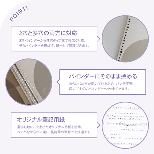 ロングセラーのパペルールを「きれいな色の組み合わせ×シンプルで飽きのこないデザイン」というコンセプトはそのままにリニューアルしました。バインダーとセット使いしやすいデザイン・仕様で、ルーズリーフパッド、バインダー穴つき ワイヤー綴じノート、バインダー用ポケットの3アイテムが新登場。