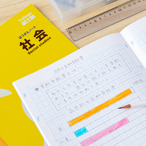 【キャンペーン商品/2026年4月30日まで】商品コード:228860と同一商品A4科目入り方眼罫。プリントが貼りやすい目印付き。