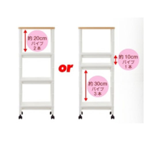 セットになっているパイプの組み合わせで、用途に合わせて棚の高さをアレンジできます。キャスター付きで移動も楽々!4段タイプで高さは89cmです。
