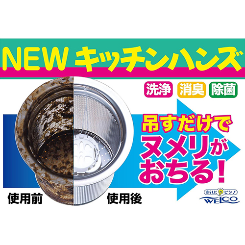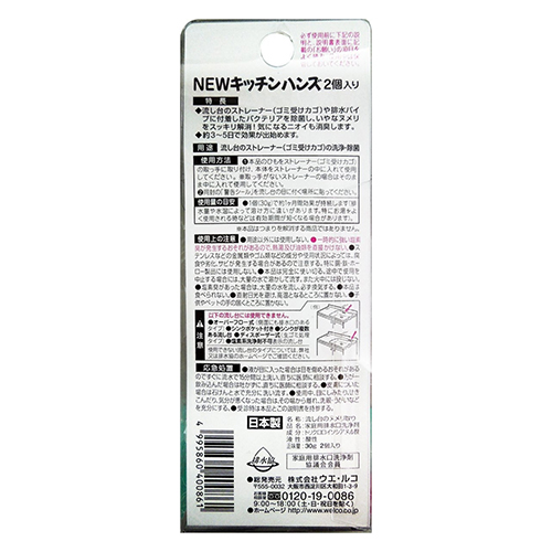 一番有名な投げ込み式ぬめり取りゴミ受けストレーナー排水パイプに付着したバクテリアを除菌し、いやなヌルヌルやパイプの詰まりをスッキリ解消し、脱防臭の効果に優れています。3~5日で効果が出始めます。