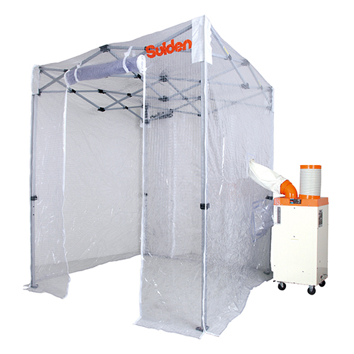 イベントや簡易休憩所、災害時など様々な場所に涼空間を設置することができます。入口は前後2か所あり、使い勝手に優れています。循環式で効率よくすぐ冷えます。現場の休憩場所に設置することで暑さ対策として環境改善を行うことができます。