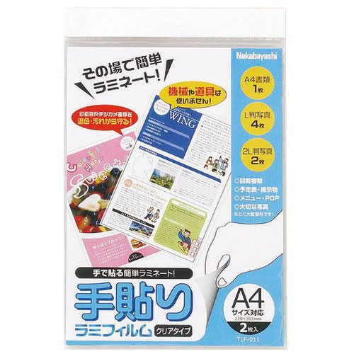 手貼りラミフィルム A4 2枚 TLF-011