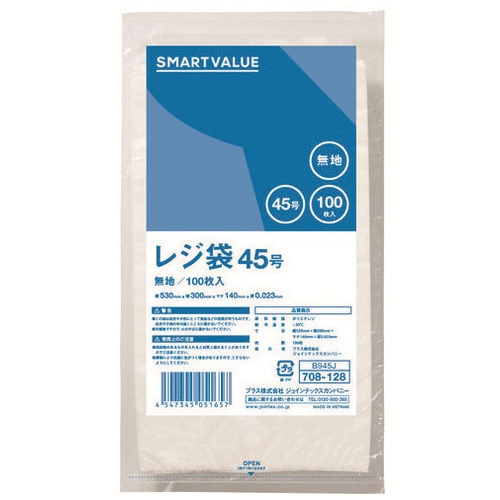 ●入数:100枚●外形寸法(縦)[mm]:530●外形寸法(横)[mm]:300●マチ幅[mm]:140●厚[mm]:0.023●色:乳白●規格:45号●材質:高密度ポリエチレン●注意事項:商品の透明度がわかるように撮影をした画像の為、中身に対してジャストサイズとなっておりますので、ご注意ください。●JOINTEXオリジナル●製造国:ベトナム ●最小出荷単位: 1
