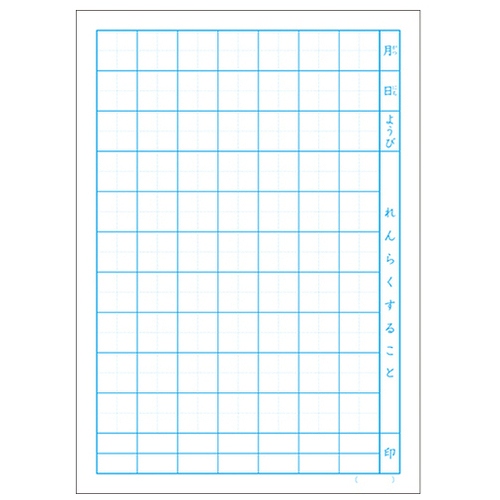 ●外形寸法(縦)[mm]:252●外形寸法(横)[mm]:179●枚数[枚]:30●マス数[マス]:7×10●罫内容:21mmマス●白色度:70%●製本形式:糸綴じ●対象学年:1年●枚数(1冊あたり)[枚]:30●規格:セミB5●種別:れんらくちょう7行マス目(リーダー入)●製造国:日本 ●最小出荷単位: 1