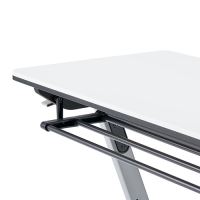 省スペースに有効なスタッキングピッチ99mmのアルミダイキャスト脚フォールディングテーブル(棚なし)。