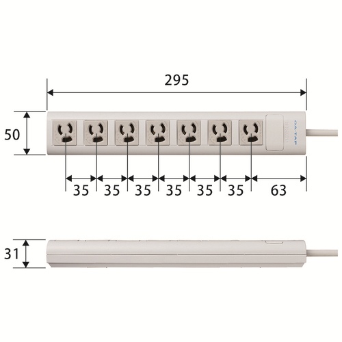 ●外形寸法(幅)[mm]:50●外形寸法(奥)[mm]:31●外形寸法(高)[mm]:295●定格:125V/15A/1500W●コード長:5m●色:ホワイト●付属品:3P→2P変換アダプタ ●最小出荷単位: 1