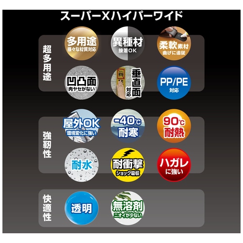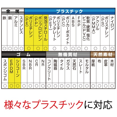 多用途を超えた超多用途!従来の接着剤ではつきにくかった素材にも使用できます。
