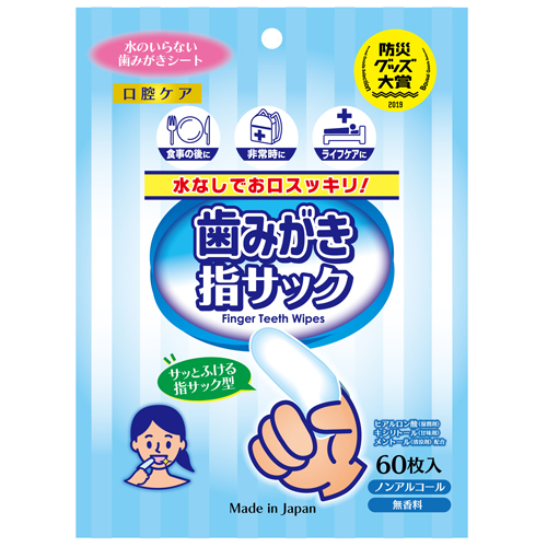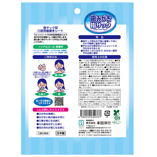 指の感覚でお口をマッサージ。指サック型の歯磨きシート。やわらかい厚めのメッシュシートが汚れを拭き取ります。