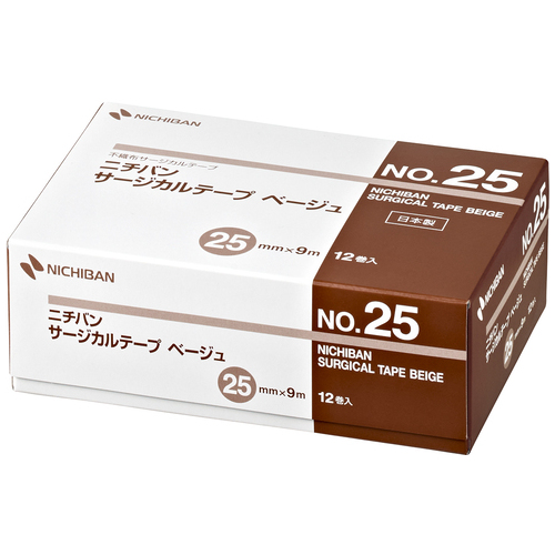 ●入数:12巻●寸法:25mm×9m●外形寸法(幅)[mm]:25●色:ベージュ●材質:基材=パルプ・ポリエステル不織布、粘着剤=アクリル系 ●最小出荷単位: 1