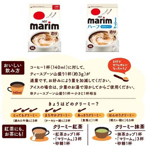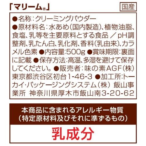 ●種別:マリーム●内容量:500g●種類:クリーミングパウダー●容器形状:袋●軽減税率:対象●製造国:日本●メーカーの都合によりパッケージや仕様などが変更になる場合がございますので、あらかじめご了承ください。 ●最小出荷単位: 1