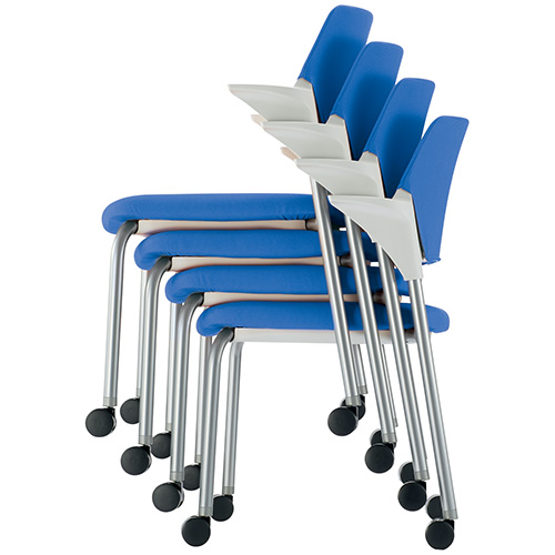 ●外形寸法(幅)[mm]:557●外形寸法(奥)[mm]:512●外形寸法(高)[mm]:775●質量[kg]:5●タイプ:背パッド付●色(座):ブルー●座面高[mm]:430●座面寸法(幅)[mm]:436●座面寸法(奥)[mm]:482●スタッキング可能数[脚]:4●材質:背(張地/芯材)=布(ポリエステル)/ポリプロピレン●座(張地/芯材)=布(ポリエステル)/ポリプロピレン、クッション=ウレタンフォーム、脚=直径25.4mmスチールパイプ、キャスター=ナイロン双輪キャスター●注意事項:背パッドは取り外しできません。●機能:スタッキング、キャスター付 ●最小出荷単位: 1