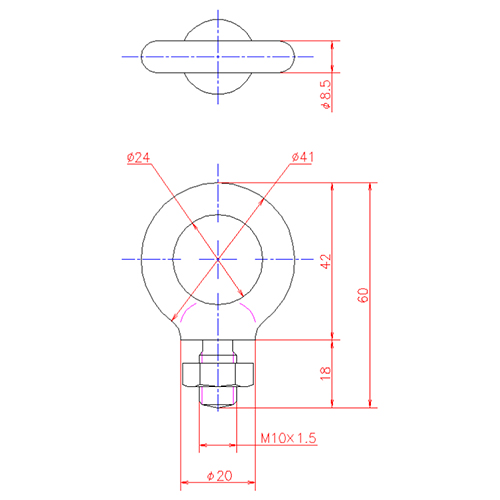 ●用途…電気設備●全長…60mm●内径…24mm●外径…41mm●線径…8.5mm●ねじ径…M10×18●ピッチ…1.5(並目)●使用荷重…150kg●材質…一般構造用圧延鋼材(SS400)●仕上げ…亜鉛メッキ有色クロメート処理●重量…74g●付属品…六角ナット×1個●RoHS対応品●参考在庫数・商品詳細・サイズ情報はメーカー(参考)URLからもご確認いただけます。 ●最小出荷単位: 1