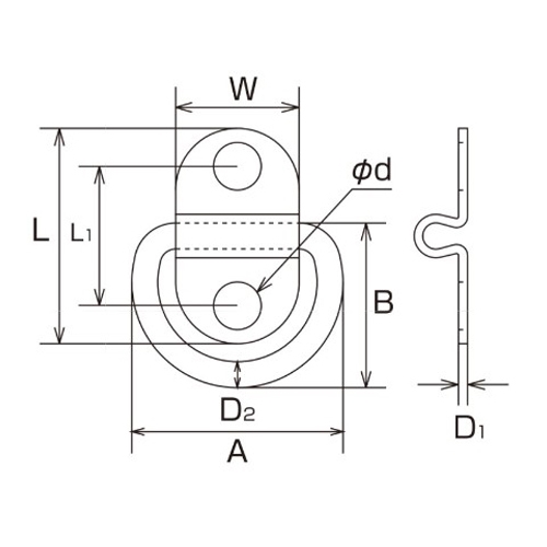 ●線径…4mm●プレート…20×34mm●使用荷重…15kg●サイズ(mm)…D1:1.2、L:34、L1:21、W:20、d:6.8、D2:4、A:34、B:26●材質…SUS304●穴径…6.8mm●重量…15g●取付ねじ無し●参考在庫数・商品詳細・サイズ情報はメーカー(参考)URLからもご確認いただけます。 ●最小出荷単位: 1