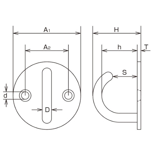●サイズ(mm)…D:6、A1:40、H:26、S:13●穴径…5.2mm●使用荷重…15kg●材質…SUS304●重量…32g●取付ねじ無し●参考在庫数・商品詳細・サイズ情報はメーカー(参考)URLからもご確認いただけます。 ●最小出荷単位: 1