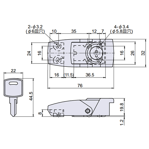 ●全長(mm)…76●幅(mm)…24●穴径(mm)…3.2・3.4●仕様…鍵付●材質…亜鉛ダイカスト、SUS304●仕上…クロムメッキ●入数…1個●許容荷重…30.6kgf●重量…73g●取付ねじ無し●EA951BR-52と-54のキーは共通に使えます。(同じ鍵番号です。)●参考在庫数・商品詳細・サイズ情報はメーカー(参考)URLからもご確認いただけます。 ●最小出荷単位: 1